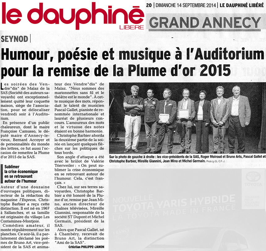 5 février 2003 - France Bleu Pays de Savoie 95.2 FM - Intervention téléphonique à la demande de Pascal Gallet invité de l'émission animée par Serge Carbonell : “La porte à côté” - 1 heure.