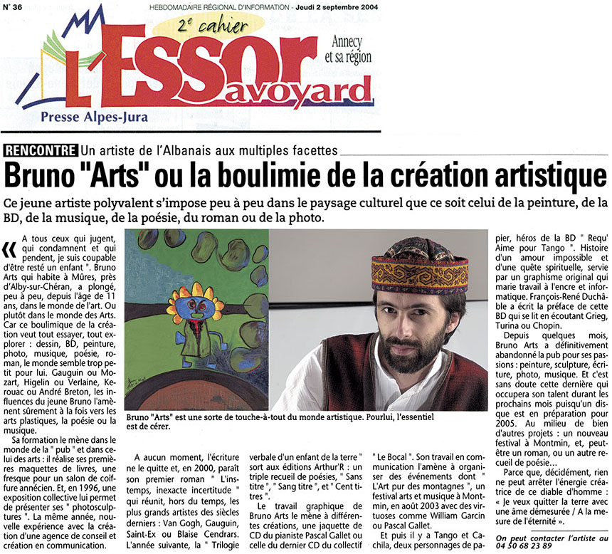 2 novembre 2004 - Radio Semnoz - 91.5 FM - Invité de l'émission animée par Anne Sartori : “Semnoz Mag.”, émission relative à l'exposition de peinture “Flash Back & Digital Paintings” au Prieuré de Sévrier - 10 mn.
